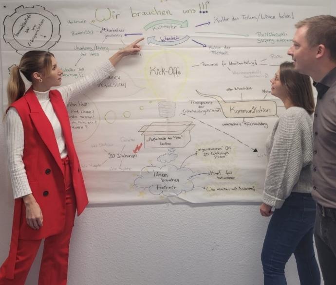 Janine Froede: Das Interesse an unserem Projekt war groß, wodurch auch für das erste Projektjahr die Anzahl der angestrebten Teilnehmenden erreicht werden konnte. Zudem ist gerade die anfängliche Beteiligung der Leitungskräfte hervorzuheben, da diese teilweise zusätzlich zu den offiziellen Teilnehmenden aus ihrem Bereich an der Kick-Off Veranstaltung teilgenommen haben. Natürlich gab es dabei auch kritische Stimmen, aber weniger mit dem Kontext „brauchen wir nicht“, sondern eher konstruktive Kritik und Vorschläge, welche Dinge wir bei der Umsetzung berücksichtigen sollten und welche generellen Schwierigkeiten es geben könnte. Da die Strukturen des am Ende hoffentlich bestehenden Ideenmanagements komplett offengelassen werden, scheint das Thema jedoch für viele noch sehr abstrakt und wenig greifbar zu sein. Allgemein lässt sich festhalten, dass das Interesse für unsere Teilvorhaben, gerade auch in Bezug auf das Verbundprojekt, auf jeden Fall besteht. Die Skepsis, inwieweit am Ende tatsächlich ein Ideenmanagement entsteht, welches von den Mitarbeitenden genutzt wird und für diese und das Unternehmen einen Mehrwert generiert, ist jedoch ebenso vorhanden ist.